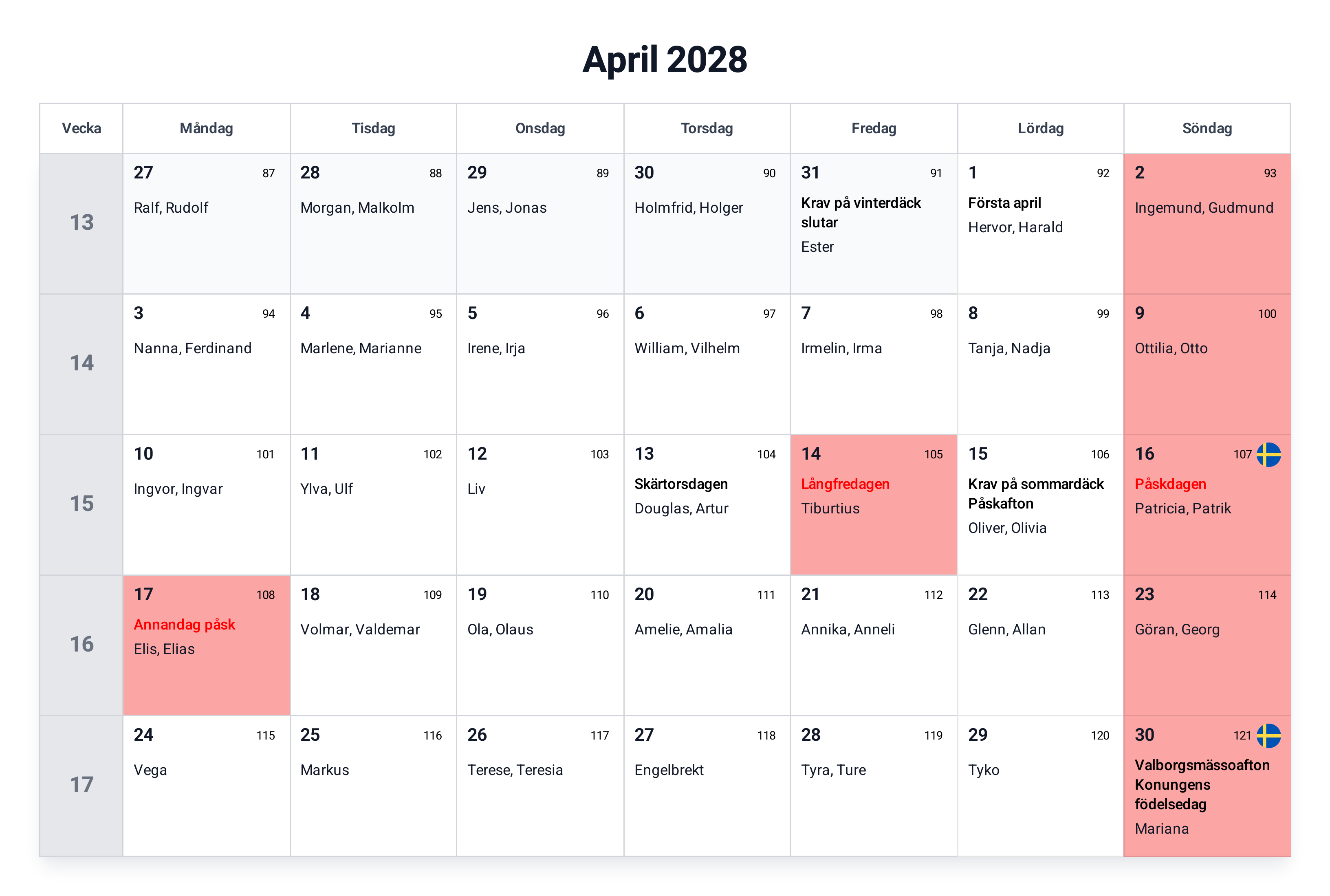 Kalender april 2028