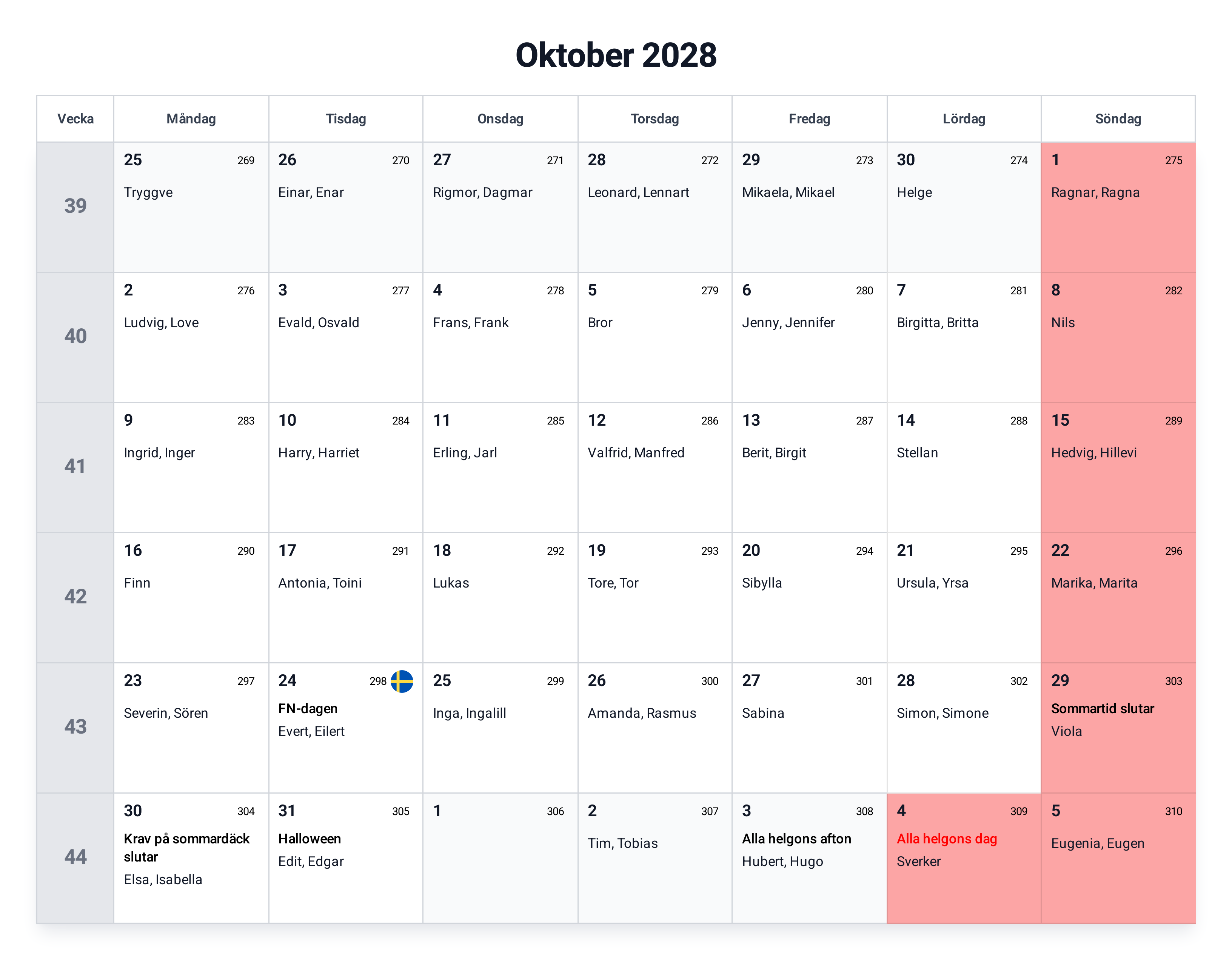 Kalender oktober 2028